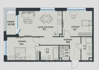Предлагаем вашему вниманию 3Е : просторную квартиру с кухней гостиной 21,1 кв.м. и двумя спальнями(14,7 кв.м. и 14,4 кв.м. с ванной комнатой), общей площадью 77 квадратных метров в престижном жилом комплексе бизнес-класса "Остров", расположенном на живописном берегу Москвы-реки. Просторная квартира без внутренней отделки располагается на 15-м этаже здания, позволяя насладиться великолепными видами и свободой планирования пространства благодаря свободной планировке.(На фото визуализация квартиры по возможному дизайн проекту).