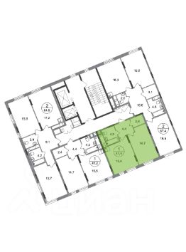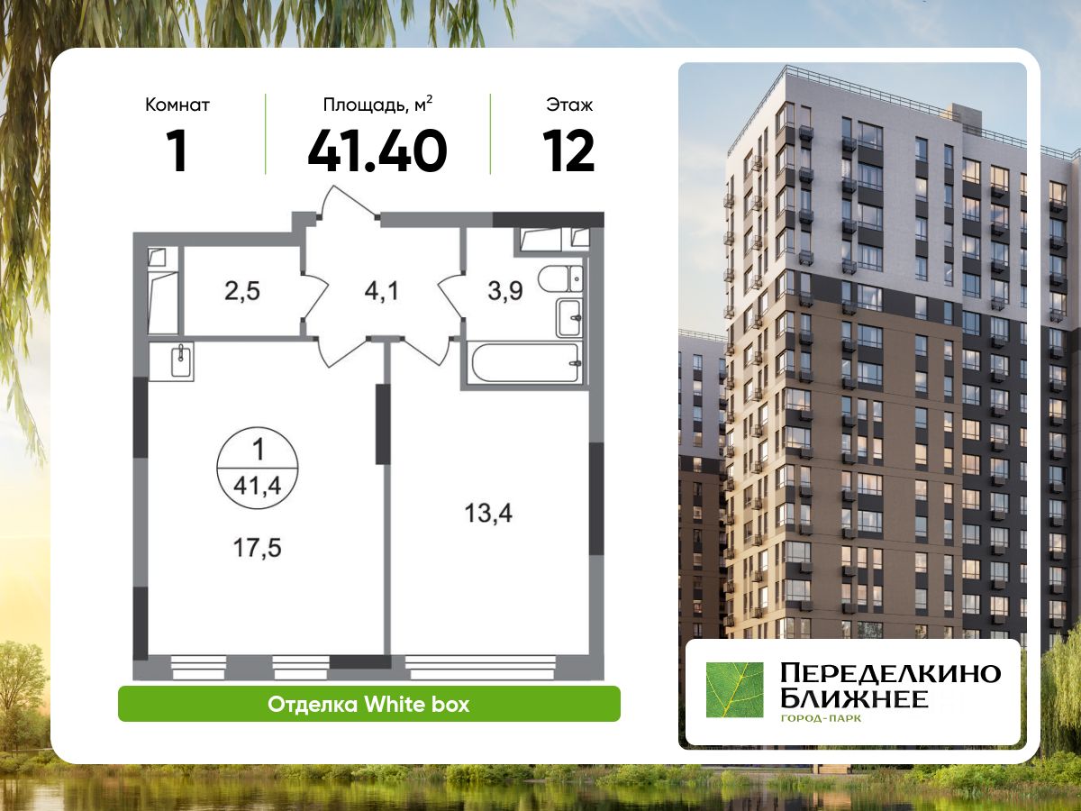 Общая площадь квартиры - 41,4 кв. м, этаж 12 из 17.