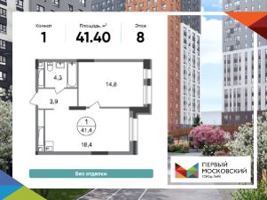 Общая площадь квартиры - 41,4 кв. м, этаж 8 из 22.