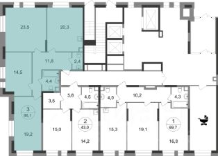 Общая площадь квартиры - 96,1 кв. м, этаж 1 из 22.