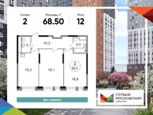 Общая площадь квартиры - 68,5 кв. м, этаж 12 из 22.