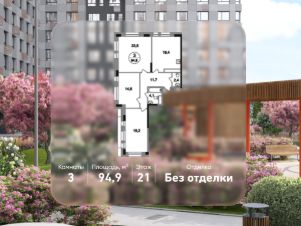 Общая площадь квартиры - 94,9 кв. м, этаж 21 из 22.