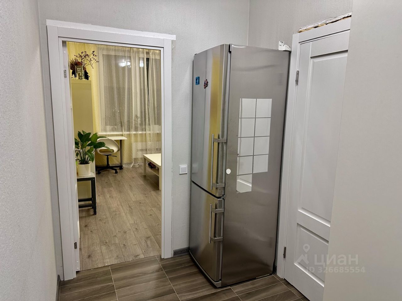 Холодильник установлен в коридоре сразу за кухонной зоной, это очень удобно и не шумно для сна.