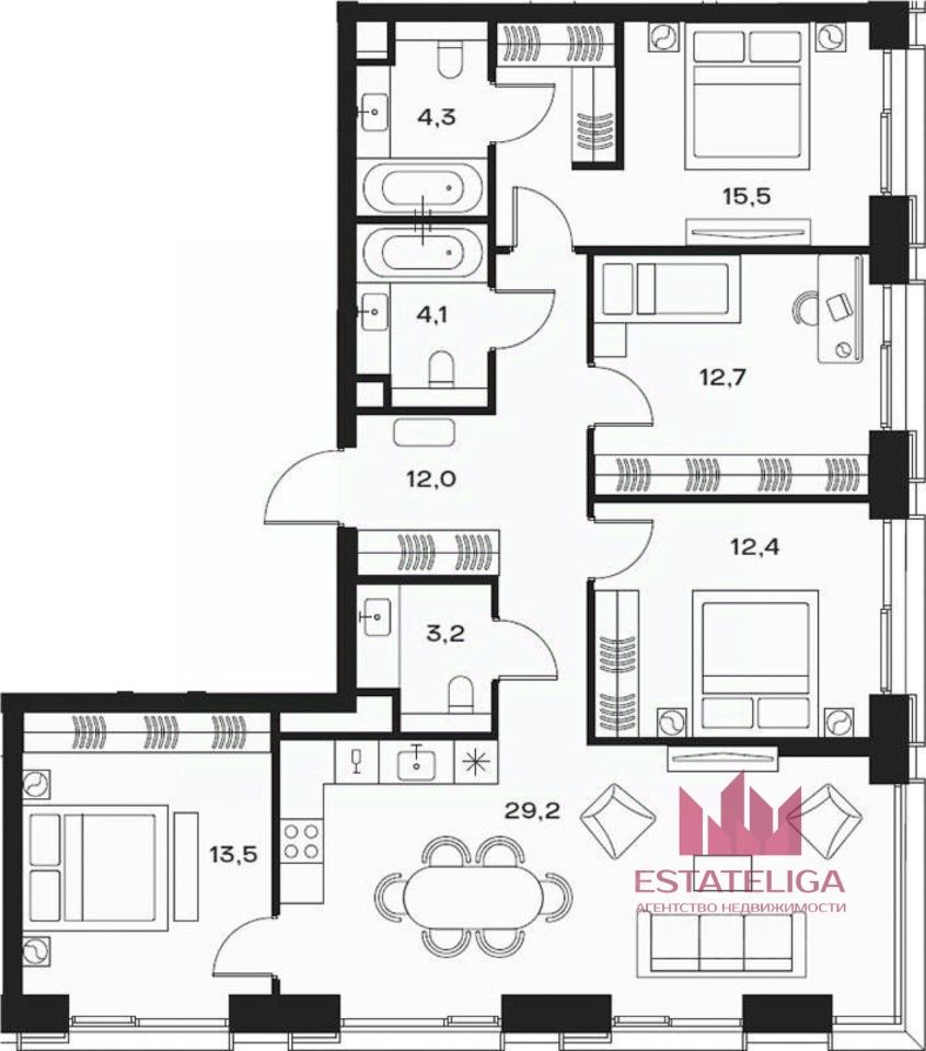 Id 60637. ВИДОВАЯ 4-КОМНАТНАЯ КВАРТИРА В ЖК БИЗНЕС-КЛАССА SOUL