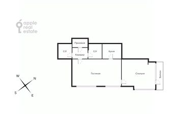Общая площадь 59 м, высота потолка 3.2 м. Помещение находится на 7-ом этаже. Планировка квартиры предусматривает: 1 спальню, кухню-гостиную, холл, 2 санузла, гардеробную и лоджию. Окна выходят на юго-западную сторону с панорамами на МГУ, Лужники и Мосфильмовскую.
