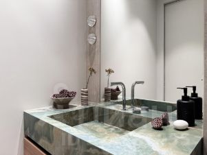 - Сантехника: Производство Италия, включая авторскую раковину из итальянского керамогранита.