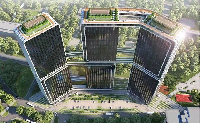 Вертикальный город из трёх башен, связанных 6 скай-мостами. На уровне 26 и 27 этажей размещены переходы и зоны отдыха, а на высоте 170 метров — благоустроенный скай-парк с видами на столицу.