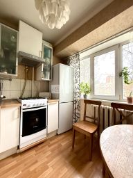 квартира находится на комфортном 3-м этаже 16-ти этажного дома. Общая площадь составляет 40 м2, жилая — 23,7 м2. Две изолированные комнаты (14,5 и 9,2 м2), кухня 7 м2, большая застеклённая лоджия на две комнаты. Мебель остается по договоренности.