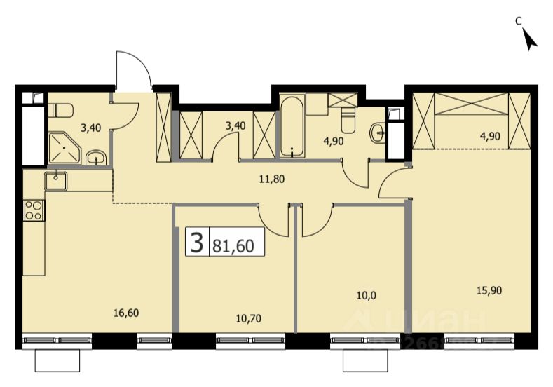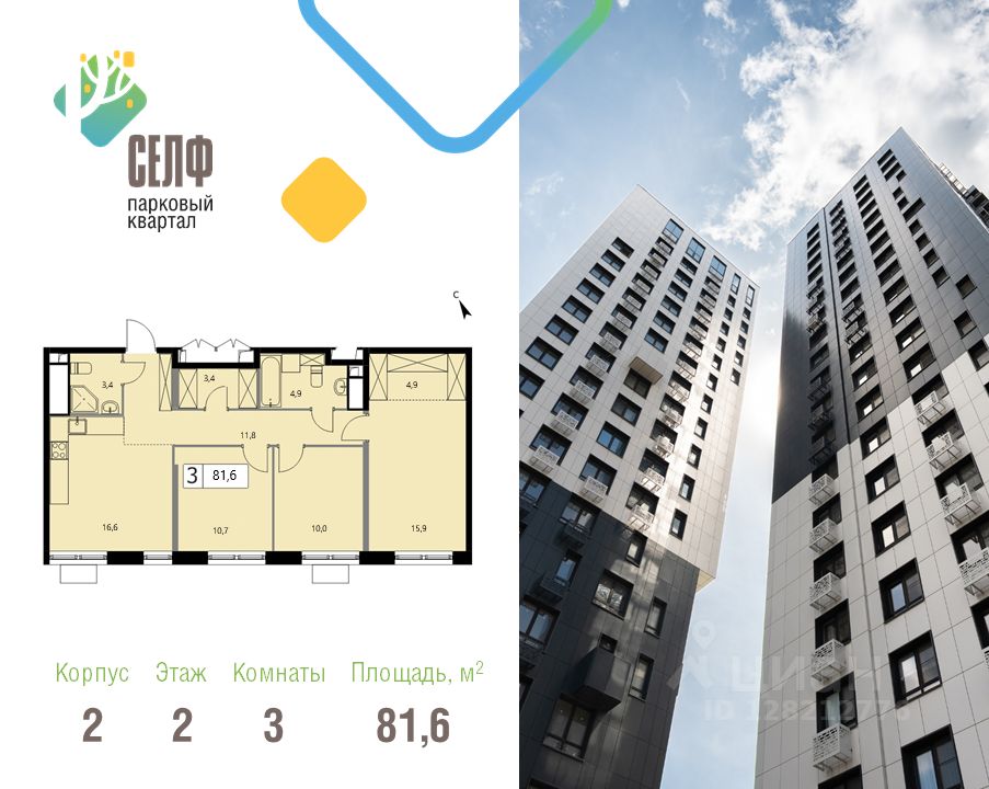 Продается просторная и светлая квартира площадью 81,6 кв. м. на 2 этаже в современном ЖК Парковый Квартал Селф. Дом сдан - ключи в день покупки! Семейная ипотека от 5,99%.
