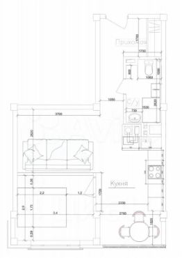 Квартира свободной планировки, 43 м²