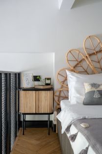 Погрузитесь в атмосферу уюта и стиля в наших уникальных двухуровневых апартаментах, где каждый элемент интерьера создан с любовью и вниманием к деталям. Ощутите магию райского острова в Индонезии: авторское изголовье, расписной шкаф от талантливой московской художницы, ковёр из Швеции и картина с вернисажа — все это создаёт неповторимую атмосферу, которая вдохновляет и расслабляет.
