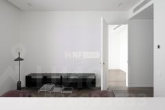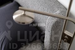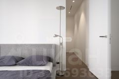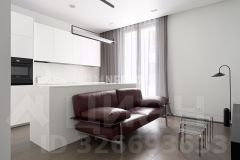 Апартамент частично меблирован: культовый диван от B&B, барные стулья и торшер от Ferm Living, светильник Vibia, винтажные журнальные столики. В спальне кровать Bino Home, прикроватная тумбочка от Kartell. Для гостиной и ванной пошит текстиль от Zinc и Zimmer+Rohde (немецкие и английские ткани изготовлены на заказ под проект).