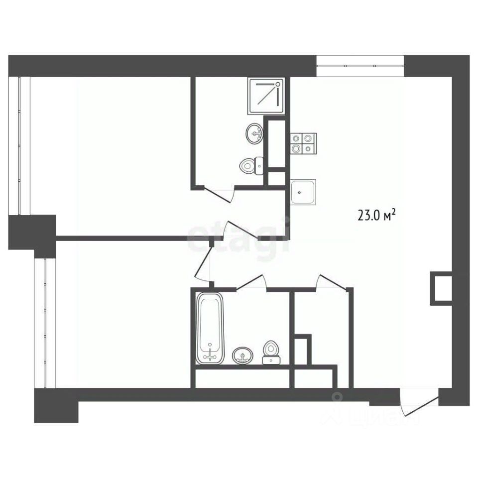 Кухня-гостиная: 23 м². Мастер-спальня.