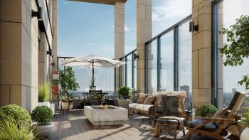 Территория комплекса благоустроена и озеленена: имеется система контроля доступа, открытые террасы на крышах, для автовладельцев предусмотрен подземный паркинг.