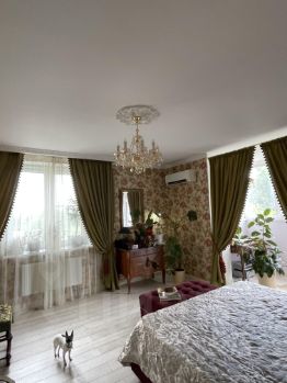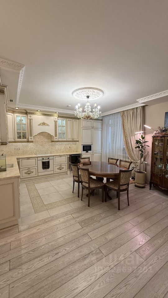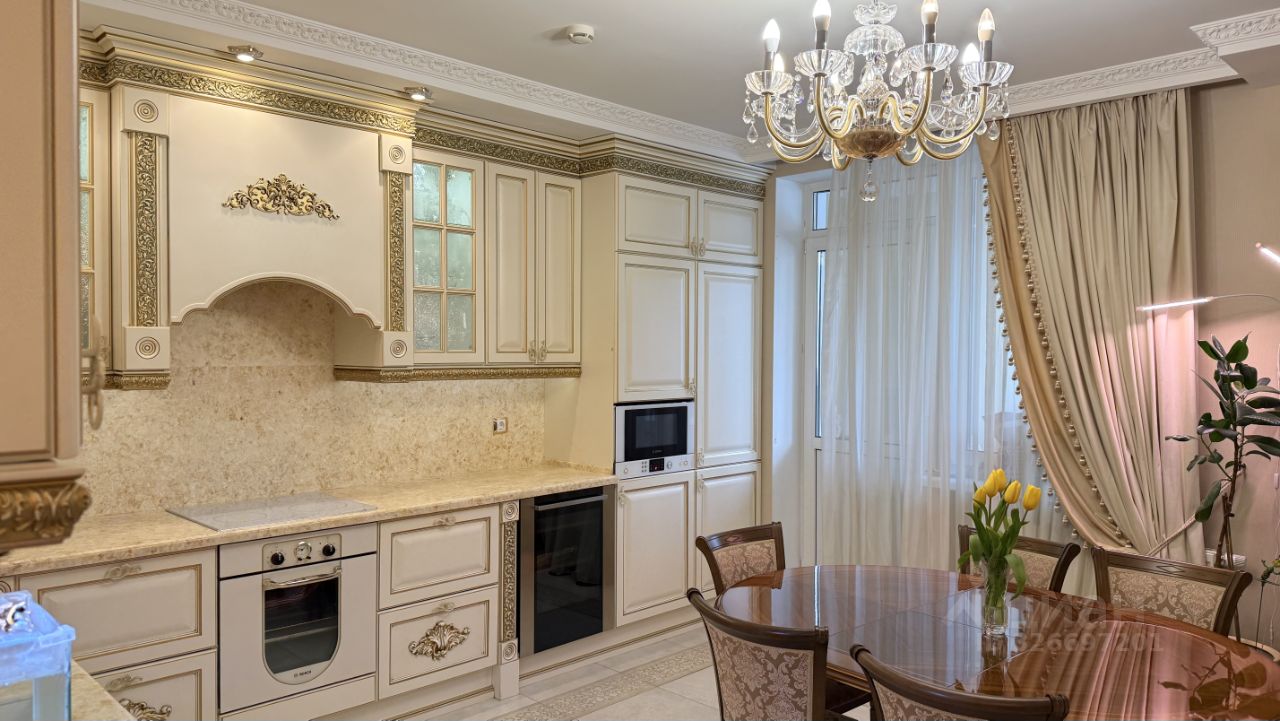 Качественный дизайнерский ремонт, стиль классический. Полы - инженерная доска, итальянская сантехника, система очистки воды, в каждой комнате кондиционеры Fujitsu. Большая кухня с техникой BOSCH: посудомойка, св печь, духовка, плита, холодильник; вместительный винный холодильник Indel B (Италия), дополнительная морозильная камера. В квартире продумано всё до мелочей, строили для себя, для большой семьи. Дети выросли, разъезжаемся.