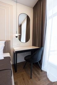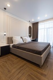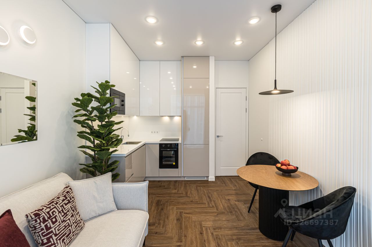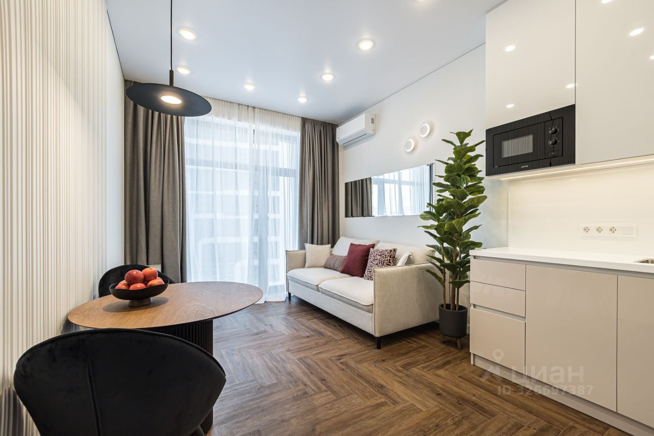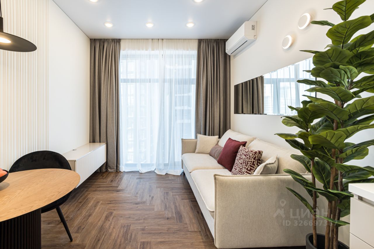 Функциональная планировка: изолированная спальня, кухня-гостиная, совмещенный санузел, гардеробная.