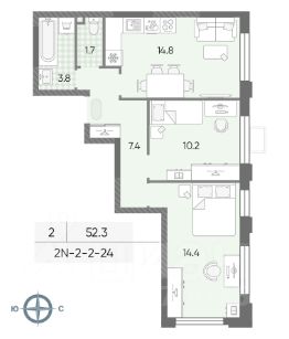 Двухкомнатная квартира 52.3 м² в ЖК Лучи — свет, пространство и городские удобства