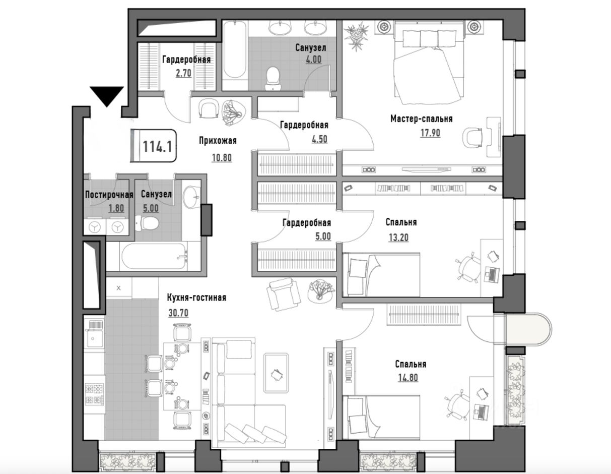 3 изолированные спальни