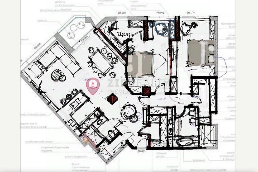 На 155 м2 идеально планируются две видовые спальни с санузлами и гардеробными комнатами, кухня-столовая и гостиная с лучшими видами из этого комплекса апартаментов.