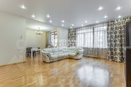 Квартира расположена в монолитно-кирпичном доме, окна выходят во двор на детскую площадку — тихо, зелено, безопасно. Планировка продумана до мелочей: большая гостиная для общения и приёма гостей, три изолированные спальни, кухня комфортного размера, два полноценных санузла, постирочная и гардеробная. Есть застеклённая лоджия. Пространство логичное, правильное, без потерь по метражу.