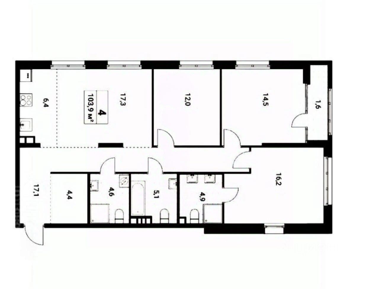 Представляем вашему вниманию просторную четырехкомнатную квартиру с огромной кухней-гостиной и тремя отдельными спальнями в отделке whitebox .