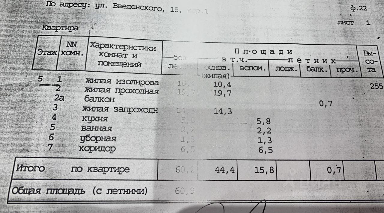 60,9 м²