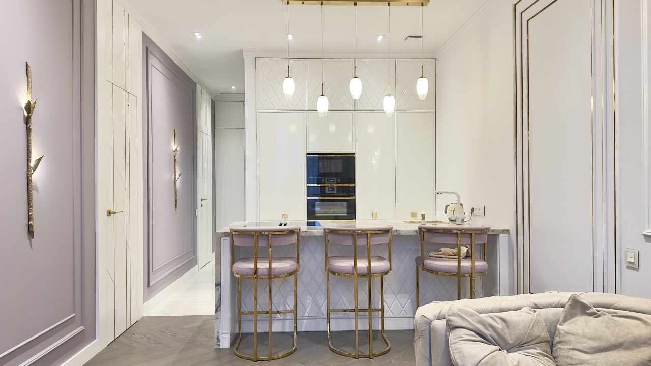 Продуманная планировка из 2 комнат: кухня-гостиная и спальня, в которой есть большая гардеробная