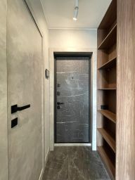 В прихожей установлен вместительный шкаф для хранения одежды.