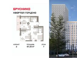 Квартира с кухней-гостиной и двумя спальнями в Квартале Герцена. Особенности планировки: предчистовая отделка.