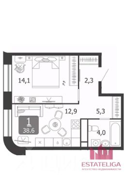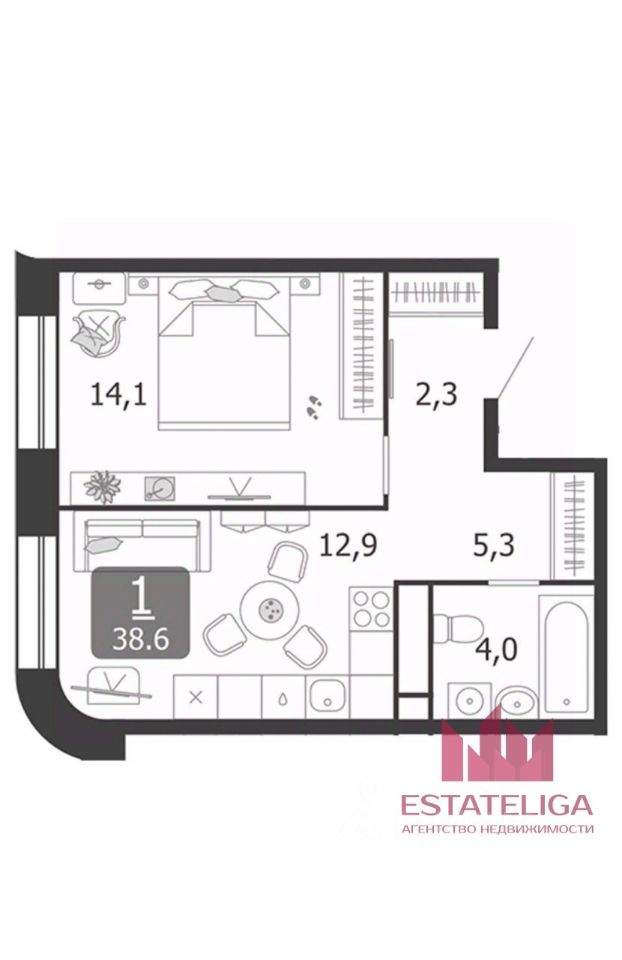 Id 60647. Продаётся однокомнатная квартира в ЖК "Shagal ".