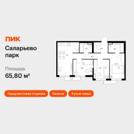Продаётся 3-комн. квартира площадью 65,8 кв.м на 7 этаже 15 этажного дома (Корпус 57.2, Секция 2) проекта ПИК Саларьево парк. Светлый просторный подъезд на уровне земли, функциональная планировка, большие окна, предчистовая отделка.