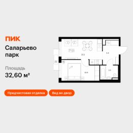 Продаётся 1-комн. квартира площадью 32,6 кв.м на 14 этаже 16 этажного дома (Корпус 57.1, Секция 1) проекта ПИК Саларьево парк. Светлый просторный подъезд на уровне земли, функциональная планировка, большие окна, предчистовая отделка.