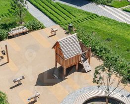 Проект задуман небольшим и уютным - в нём будет всего 4 корпуса с переменной высотой: 28, 33 и 38 этажей с подземным паркингом. Не территории мы построим детский сад на 150 малышей и школу для 350 учеников. А во дворе - зелёный парк с детскими и спортивными площадками и зонами для отдыха. На первых этажах откроются магазины, кафе и другие сервисы.