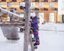 Детям любых возрастов понравится исследовать уникальное игровое пространство. Ребятам предстоит пройти полосу препятствий: проползти по тоннелю в полусфере, затем взобраться на стальной купол, а после этого — вскарабкаться по канатной сетке длиной в 15 метров, ведущей прямиком к зиплайну.