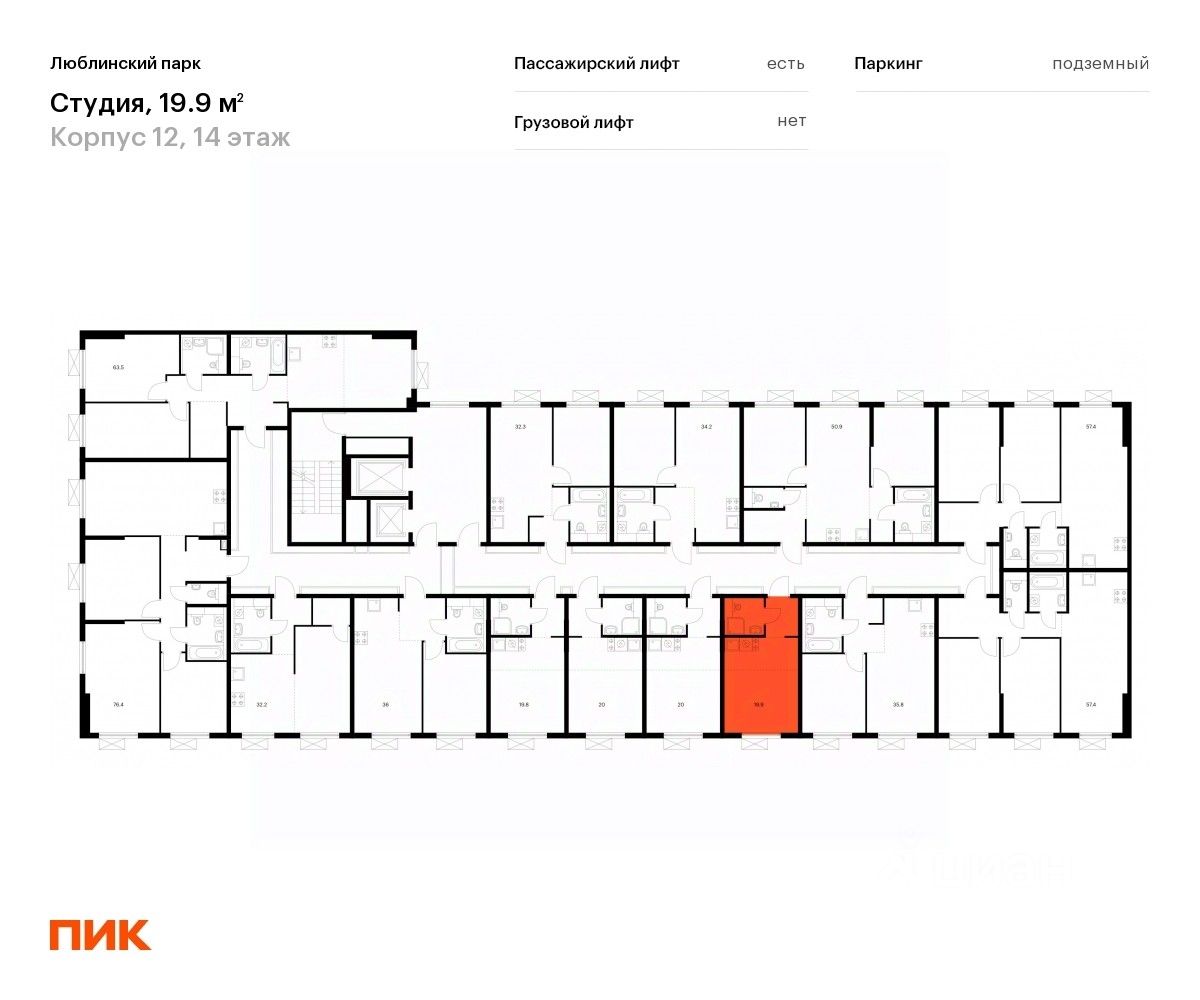 Продаётся квартира-студия площадью 19,9 кв.м на 14 этаже 16 этажного дома (Корпус 12, Секция 3) проекта ПИК Люблинский парк. Светлый просторный подъезд на уровне земли, функциональная планировка, большие окна, c отделкой.