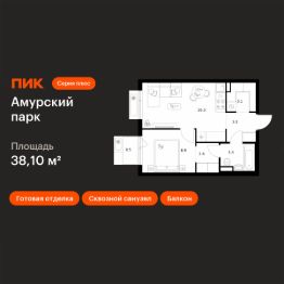 Продаётся 1-комн. квартира площадью 38,1 кв.м на 3 этаже 19 этажного дома (Корпус 4.4, Секция 4) проекта ПИК Амурский парк. Светлый просторный подъезд на уровне земли, функциональная планировка, большие окна, c отделкой.