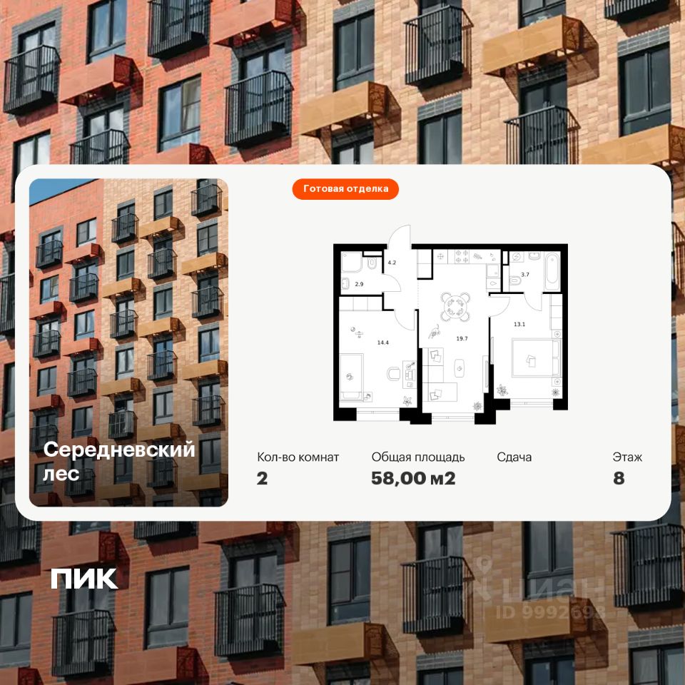 Продаётся 2-комн. квартира площадью 58 кв.м на 6 этаже 16 этажного дома (Корпус 2.1.3, Секция 3) проекта ПИК Середневский лес. Светлый просторный подъезд на уровне земли, функциональная планировка, большие окна, c отделкой.