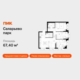 Продаётся 3-комн. квартира площадью 67,4 кв.м на 10 этаже 23 этажного дома (Корпус 69.1, Секция 1) проекта ПИК Саларьево парк. Светлый просторный подъезд на уровне земли, функциональная планировка, большие окна, предчистовая отделка.