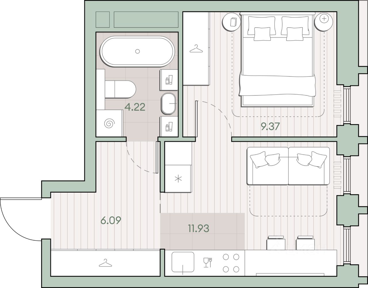 Продаётся 1-комнатная квартира общей площадью 31.61 кв.м. с отделкой white box. Квартира расположена на 3 этаже корпуса 4.1 в жилом комплексе бизнес-класса "Среда на Кутузовском" в пешей доступности от метро "Кунцевская".