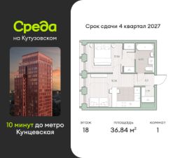 Продаётся 1-комнатная квартира общей площадью 36.84 кв.м. с отделкой white box. Квартира расположена на 18 этаже корпуса 4.1 в жилом комплексе бизнес-класса "Среда на Кутузовском" в пешей доступности от метро "Кунцевская".