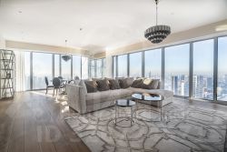 Из окон просторной гостиной открываются завораживающие виды на город. Главная спальная комната с просторной ванной комнатой и гардеробной, гостевая спальная комната с собственным санузлом, гостевой санузел.