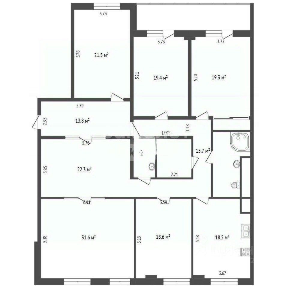 Широкий холл с колонной, потолки 3 метра, много света и воздуха, 2 совмещенных санузла.