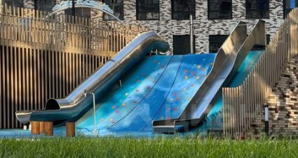 - Благоустроенная территория: Площадь с озеленением и местами отдыха, променад, летние веранды, площадка для выгула собак, спортивные площадки, шезлонги