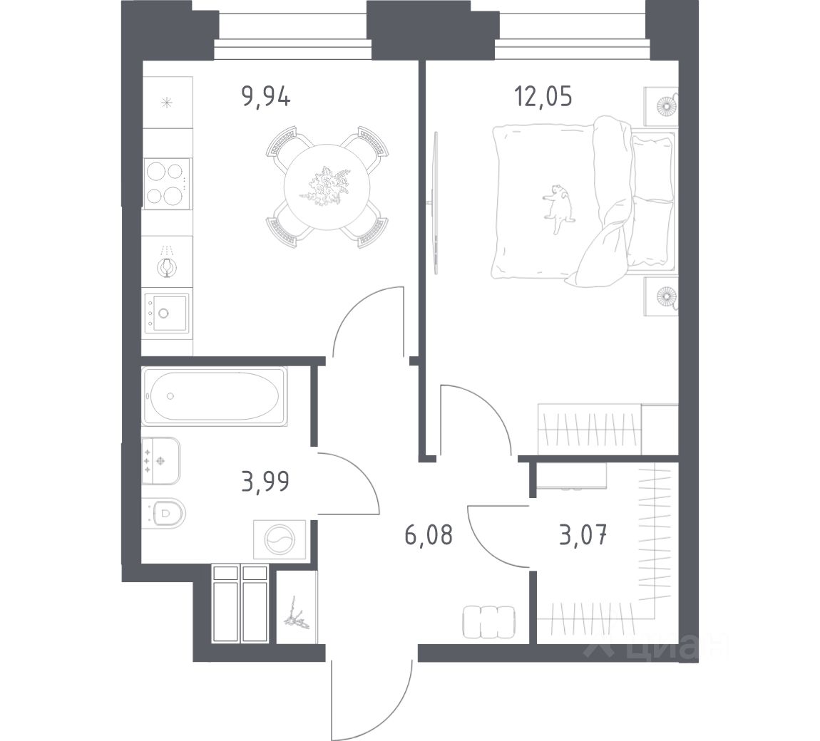 Строим кварталы для жизни с заботой о будущем. Предлагаются 1-комнатные апартаменты бизнес-класса площадью 35,13 кв.м в корпусе 2.3 на 9-м этаже, в жилом комплексе "Тропарево Парк".