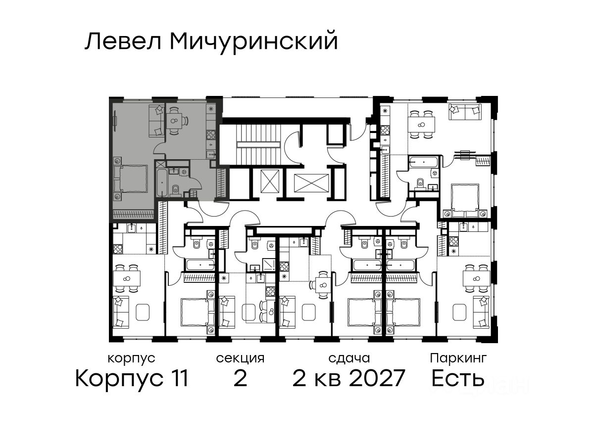 В жилом квартале, расположенном на границе с природным заказником "Долина реки Очаковки", продаётся 1-комнатная квартира площадью 39.80 кв.м без отделки. Квартира расположена на 23 этаже 24-этажного корпуса 11 в жилом комплексе бизнес-класса Левел Мичуринский (компания Level Group/Левел групп).