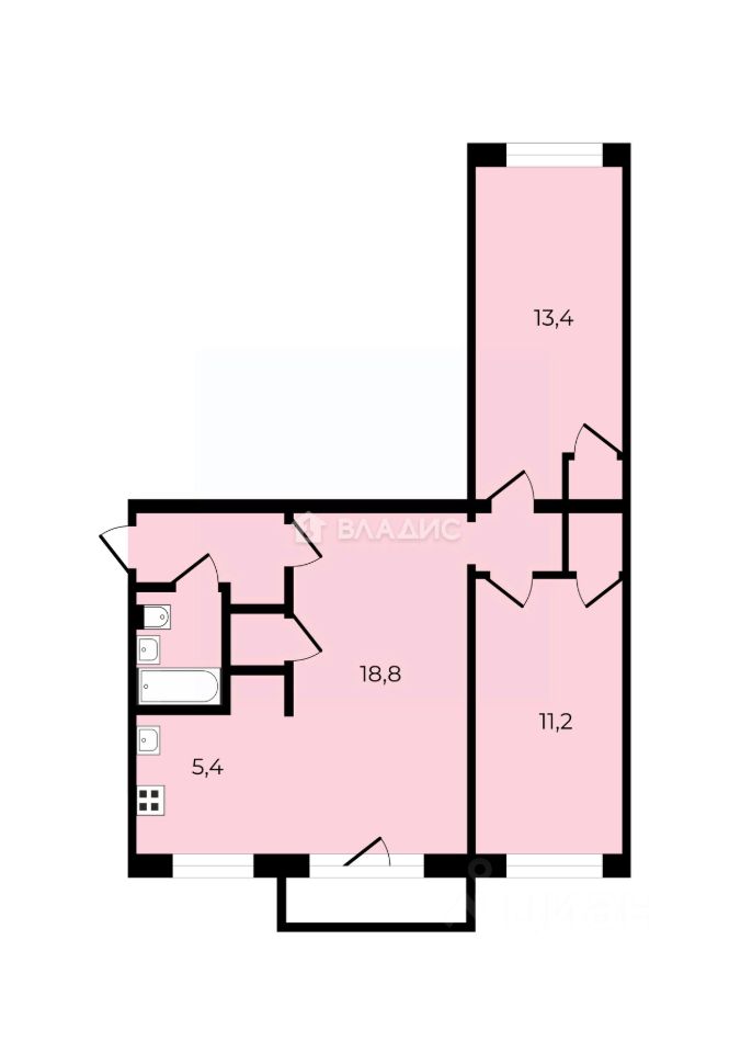 - Общая площадь: 58 кв. м.