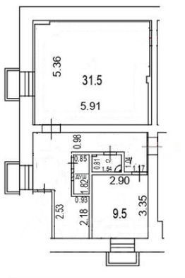 • Комнаты 31,5 м2 и 9,5 м2