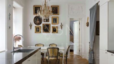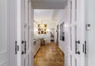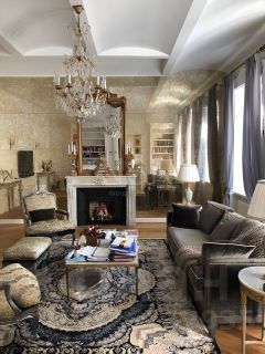 - Светлый классический интерьер с лепниной, предметами искусства и антиквариатом.