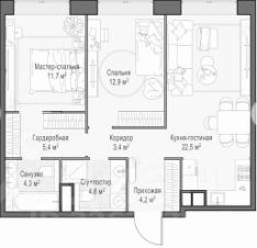 Планировка: кухня-гостиная, мастер-спальня, совмещенный с/у, обширные гардеробные, гостевая спальня/кабинет, совмещенный с/у с ванной, гардеробная и просторный холл.