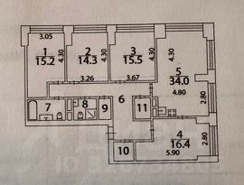 4 изолированные комнаты: 14,3/ 15,2/ 15,5/ 16,4 + 34 кв. м . кухня-гостиная.